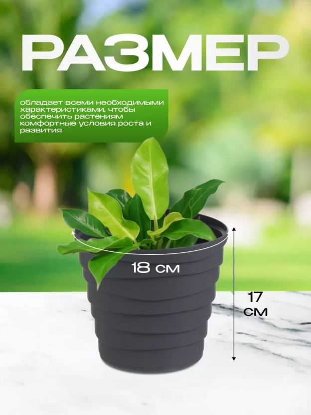Кашпо пластик, 2.25 л, универсальное, антрацит, La Decoro, Бархан, КШ-4318