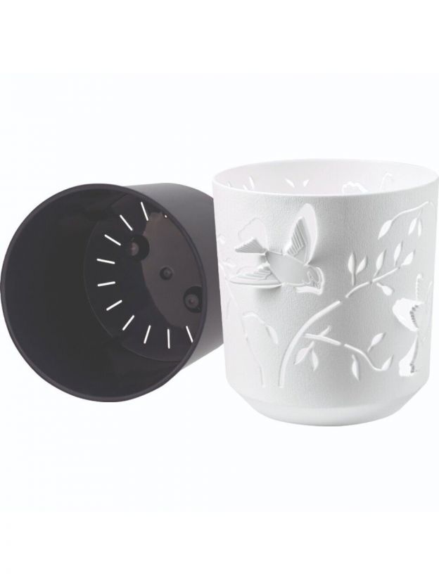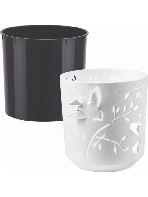 Кашпо пластик, 2.5 л, 16.2х17 см, универсальное, белый/антрацит, La Decoro, Колибри, КШ-4649