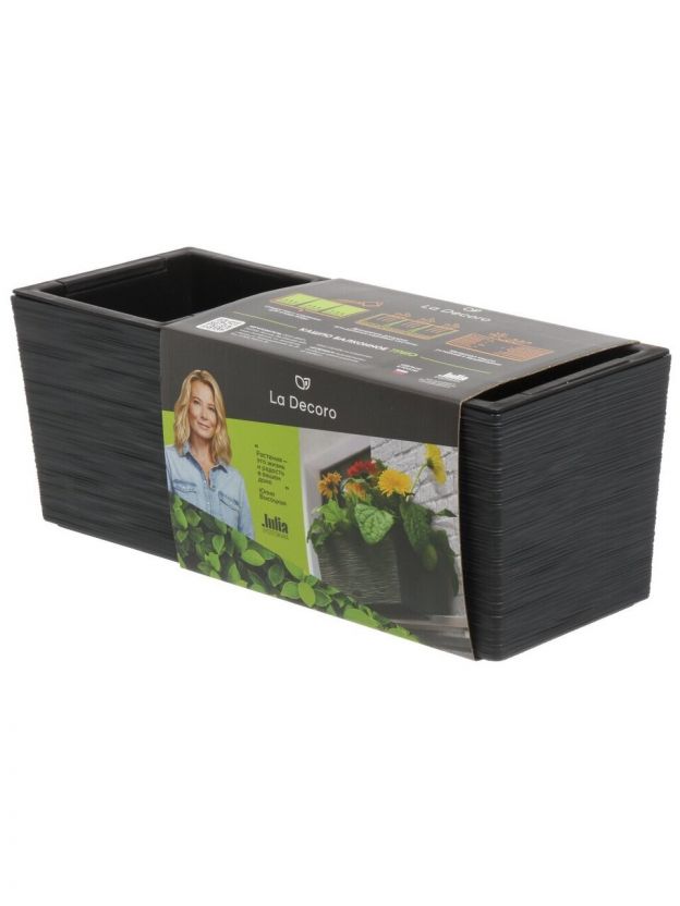 Кашпо пластик, 2.7 л, 50х19.3х19.2 см, балконное, 3-х секционное, антрацит, La Decoro, КШ-2350