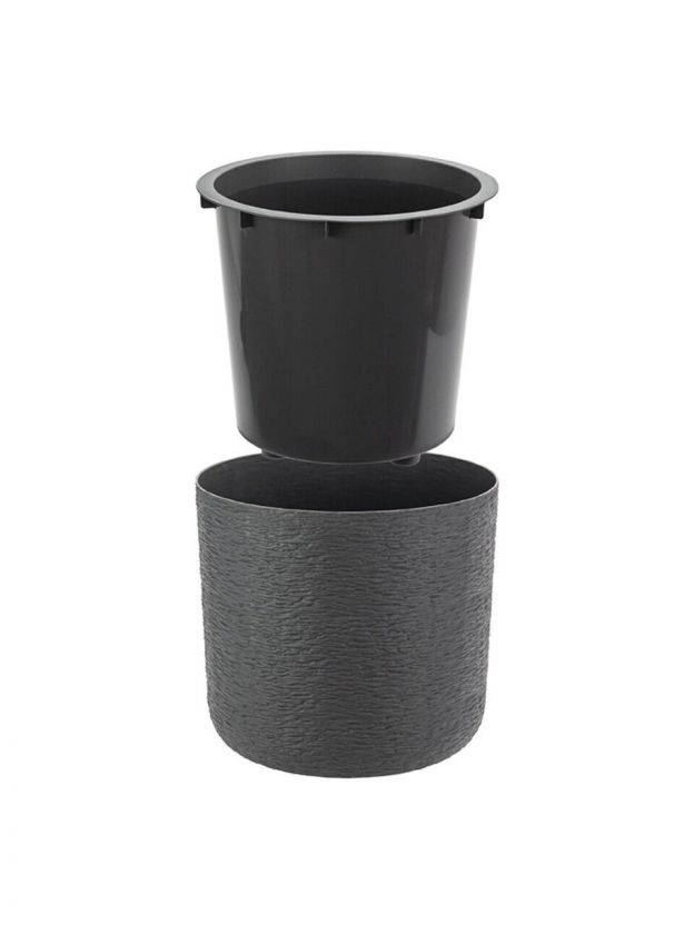 Кашпо состоит из основного горшка и вставки, благодаря чему отсутствует необходимость в поддоне.