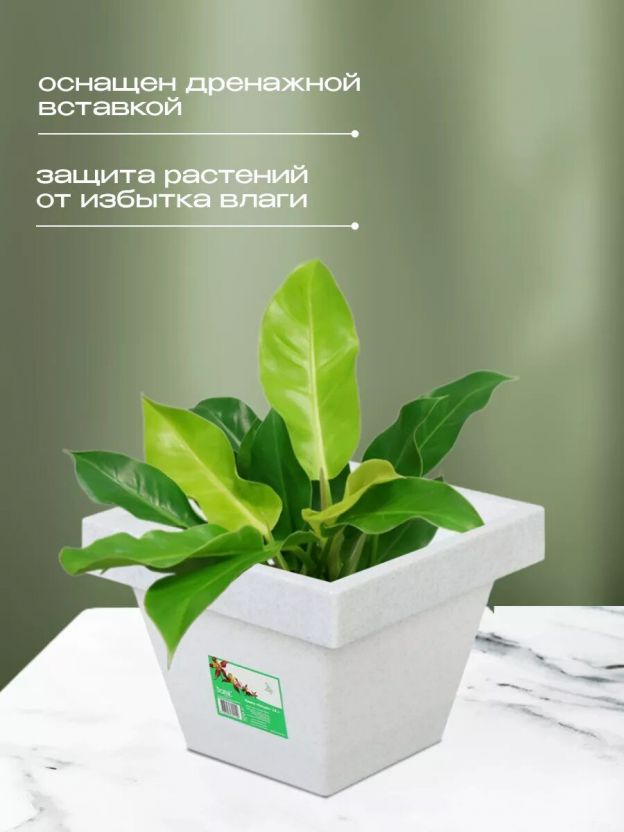 Лаконичный дизайн и аккуратный внешний вид кашпо «Квадро» украсят ваш дом, офис или дачу. Кашпо оснащено дренажным вкладышем, что предотвращает, перелив воды во время полива растений, а корни не задыхаются в воде. А также нет необходимости использовать поддон, что предает кашпо более опрятный вид. Изготовлен из высококачественного сырья, устойчив к воздействию ультрафиолета и перепадам температур.