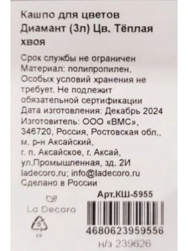 Оформите заказ на кашпо «Диамант» — получите быструю доставку, гарантию качества и отличную цену. Сделайте интерьер уютнее уже сегодня!