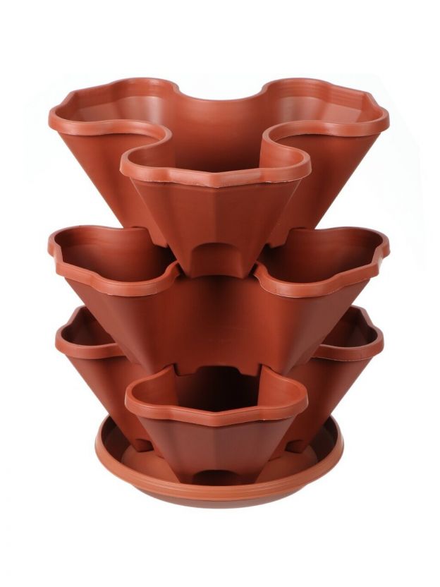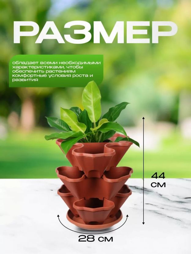 - Комплектация: с креплением для подвешивания в комплекте (трос пропускается через отверстия каждого яруса кашпо и фиксируется по нижней части при помощи креплений).