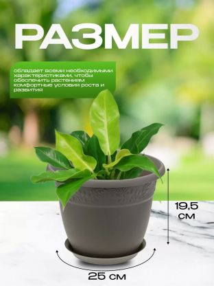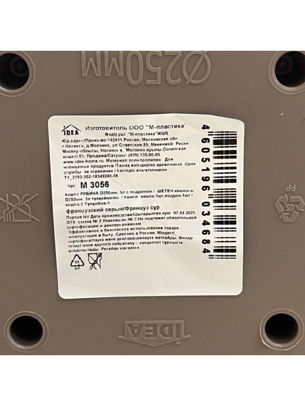Кашпо пластик, 5 л, 25х19.5 см, французский серое, Idea, Рябина, М3056