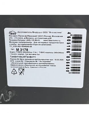 - Объем дренажной вставки: 8 л (размер 18х17х22 см).
