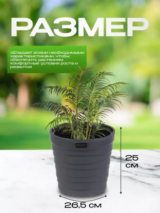 Кашпо пластик, 7.5 л, 26.5х25 см, универсальное, антрацитовое, La Decoro, Бархан, КШ-4363