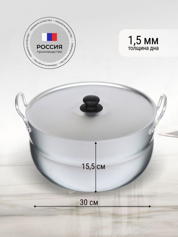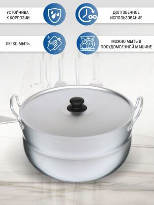 В отличие от тяжелых стальных или чугунных кастрюль, алюминиевая модель весит всего 1,1 кг — это удобно для женщин и пожилых людей. Крышка также алюминиевая, что исключает риск разбивания. Если вы ищете, чем отличается алюминиевая кастрюля от других, обратите внимание на легкость, быстрый нагрев и простоту ухода. Можно ли мыть в посудомоечной машине? Да, это разрешено производителем.