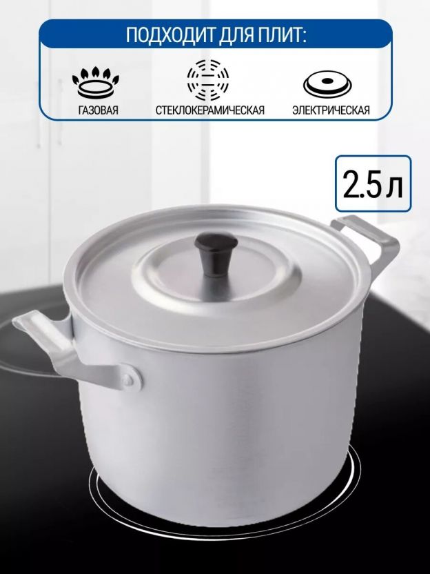 Кастрюля алюминиевая Scovo 2.5 л — универсальное решение для дома и дачи: легкая, вместительная, подходит для газовых и электрических плит. Закажите с доставкой!