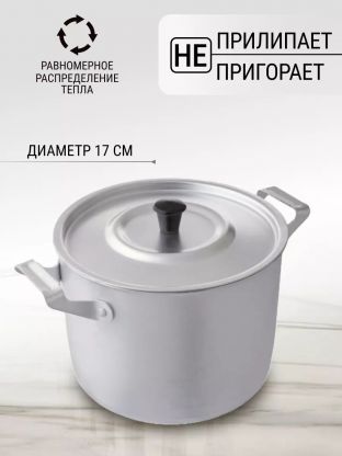 - Оптимальный объем 2.5 л, диаметр 17 см — удобно для приготовления супов, макарон, пельменей и компотов на семью