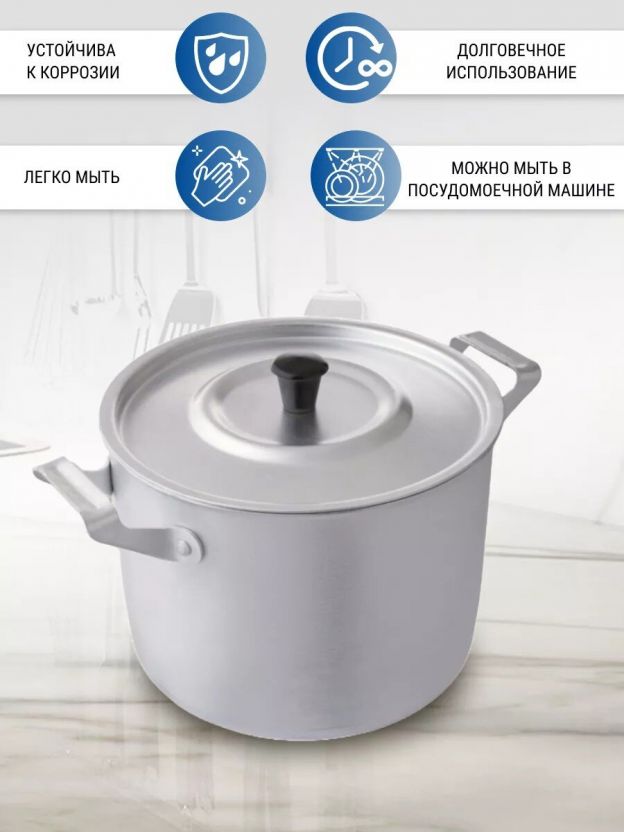 Покупатели часто спрашивают, подходит ли эта кастрюля для индукционной плиты — ответ: нет, она совместима только с газовыми, электрическими и стеклокерамическими плитами. В отличие от некоторых аналогов с толстым многослойным дном, здесь используется однослойный алюминий толщиной 1,5 мм, что обеспечивает легкость и удобство в транспортировке. Кастрюля легко моется вручную и в посудомоечной машине, что экономит ваше время.