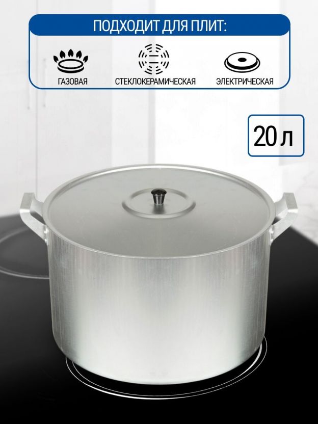 Кастрюля алюминиевая Scovo 20 л: идеальное решение для больших семей и дачи — лёгкая, вместительная, подходит для газовых и электрических плит.