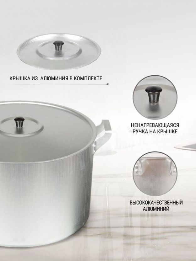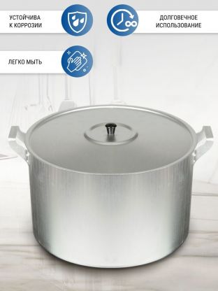 Кастрюля Scovo МШ-007 из алюминия — выбор тех, кто ищет вместительную посуду для готовки больших объёмов. Благодаря объёму 20 литров и широкому дну (34 см) кастрюля отлично подходит для варки супа, пельменей, макарон или компота на всю семью. Лёгкий алюминиевый корпус не утяжеляет посуду, что особенно удобно для женщин и пожилых людей, а отсутствие антипригарного и эмалированного покрытия снижает риск сколов и трещин.