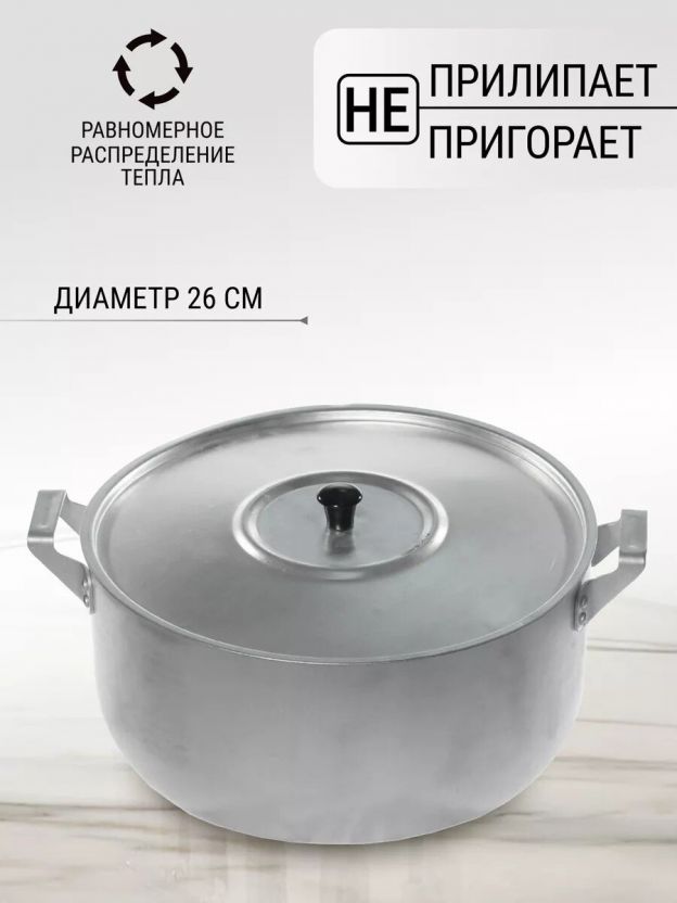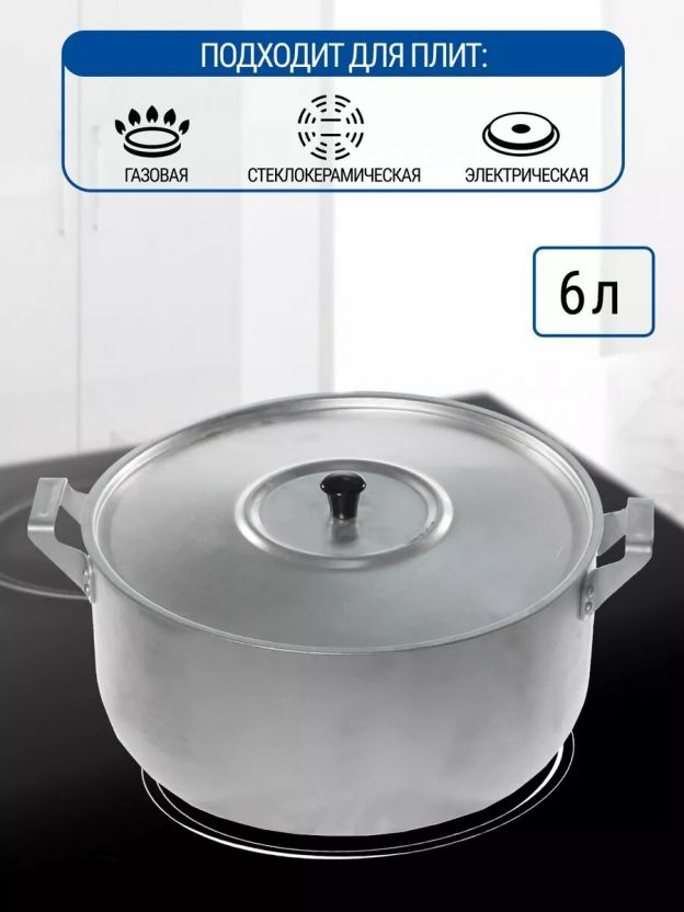 Если вы задаетесь вопросом, какую кастрюлю выбрать для большой семьи или для заготовок на даче, обратите внимание на этот вариант: вместимость 6 литров, совместимость с газовыми, электрическими и стеклокерамическими плитами, возможность мытья в посудомоечной машине. В отличие от аналогов из нержавейки или с антипригарным покрытием, алюминиевая кастрюля легче и быстрее остывает, не требует сложного ухода, а цена остается доступной.
