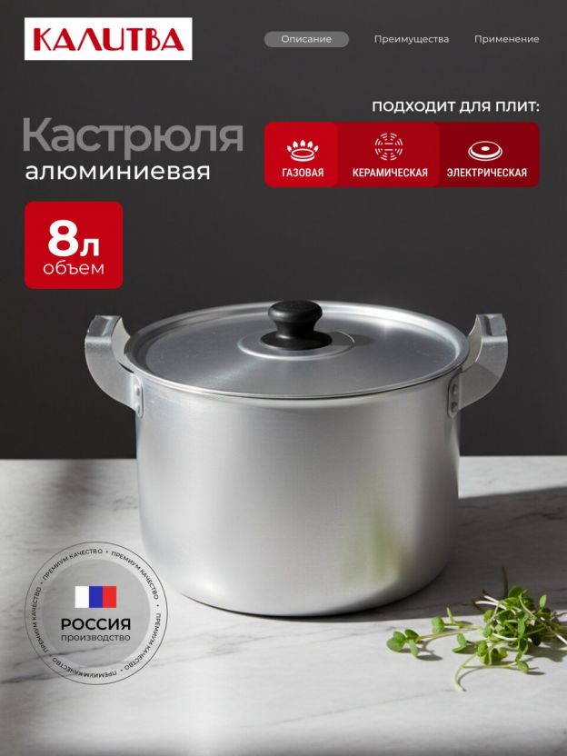 Выбирайте кастрюлю Калитва 8 л, если цените удобство, надёжность и выгодную цену. Закажите сейчас — получите гарантию 24 месяца и быструю доставку по России.