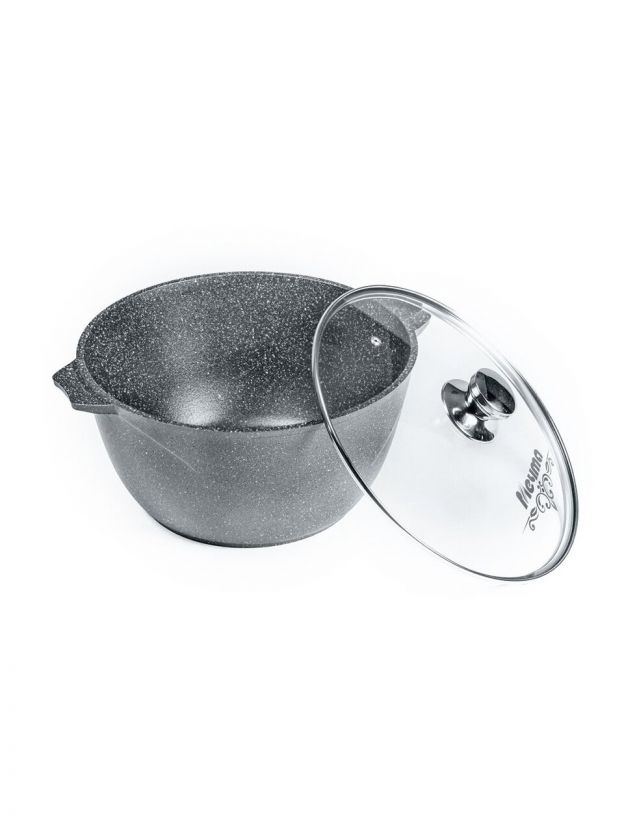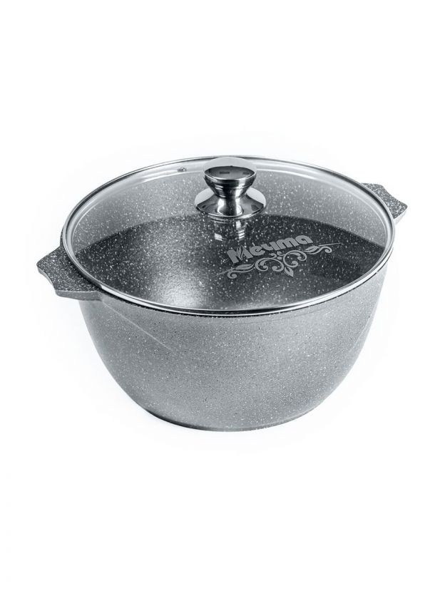 Кастрюля алюминиевая 10 л с антипригарным гранитным покрытием и стеклянной крышкой «Мечта Гранит» — идеальный выбор для больших семей и дачи: готовьте больше, тратьте меньше времени.