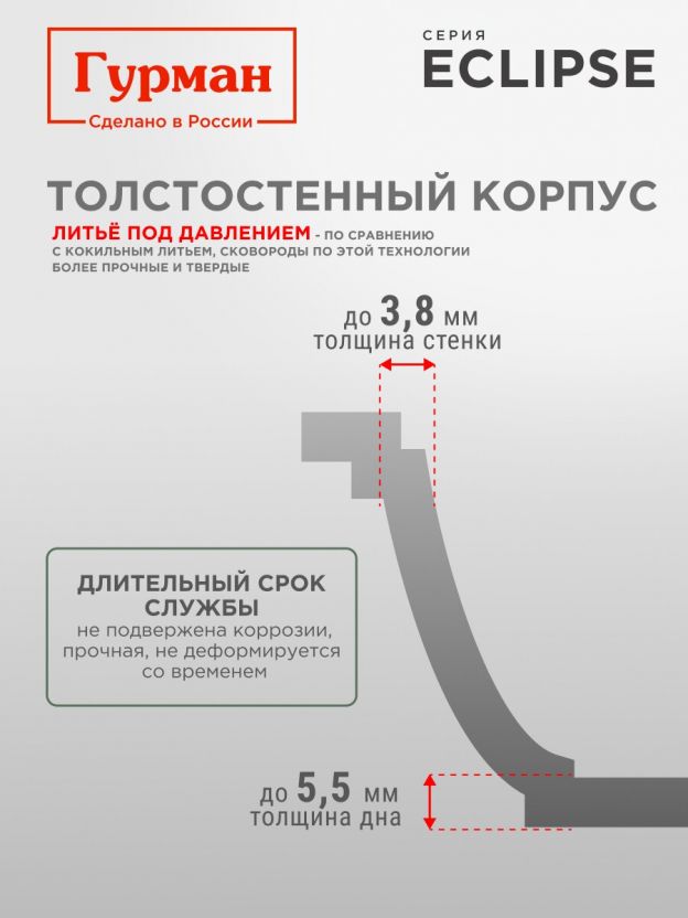 - Надёжность: алюминиевый корпус, гранитное антипригарное покрытие, толстое дно 5,5 мм, гарантия 36 месяцев