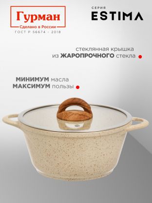 Кастрюля 2 л Гурман Estima: антипригарное покрытие, подходит для индукции, стеклянная крышка, гарантия 36 мес. — идеальный выбор для кухни и дачи
