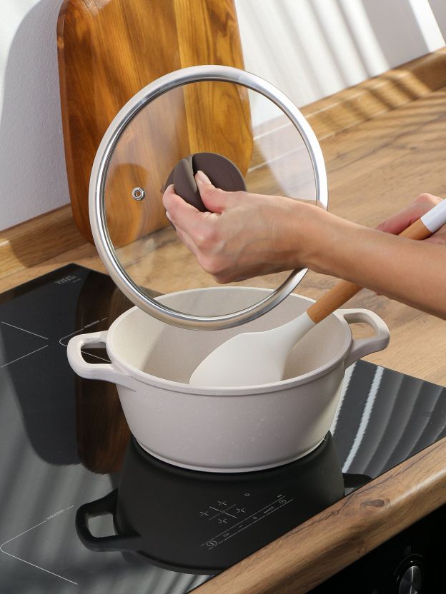 Ищете, какую кастрюлю выбрать для индукционной плиты или как выбрать антипригарную кастрюлю для каши, супа, макарон? Гурман Pollen light — это оптимальное решение: алюминиевый корпус быстро нагревается, а толстое дно исключает пригорание даже при длительном тушении. Стеклянная крышка с выпускным клапаном позволяет контролировать процесс готовки и предотвращает избыточное давление.