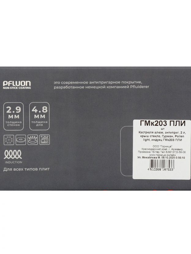 Кастрюля 2 л Гурман Pollen light с антипригарным покрытием PFLUON и стеклянной крышкой — быстрое приготовление любимых блюд на любой плите без пригорания и хлопот с мытьём.