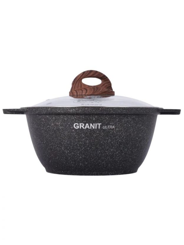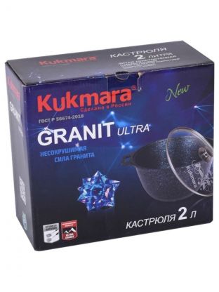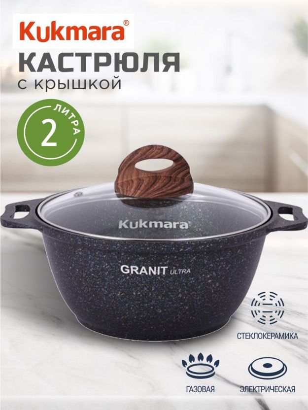 Кастрюля Kukmara Granit Ultra 2 л — идеальный выбор для здорового питания, антипригарное покрытие, стеклянная крышка, подходит для дома и дачи.