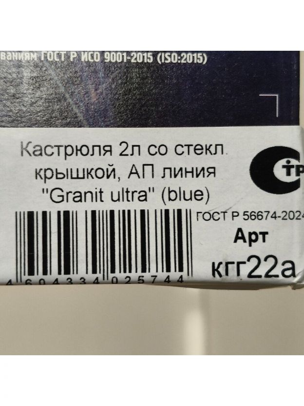 Кастрюля алюминий, антипригарное покрытие, 2 л, крышка стекло, Kukmara, Granit Ultra, кгг22а, синяя
