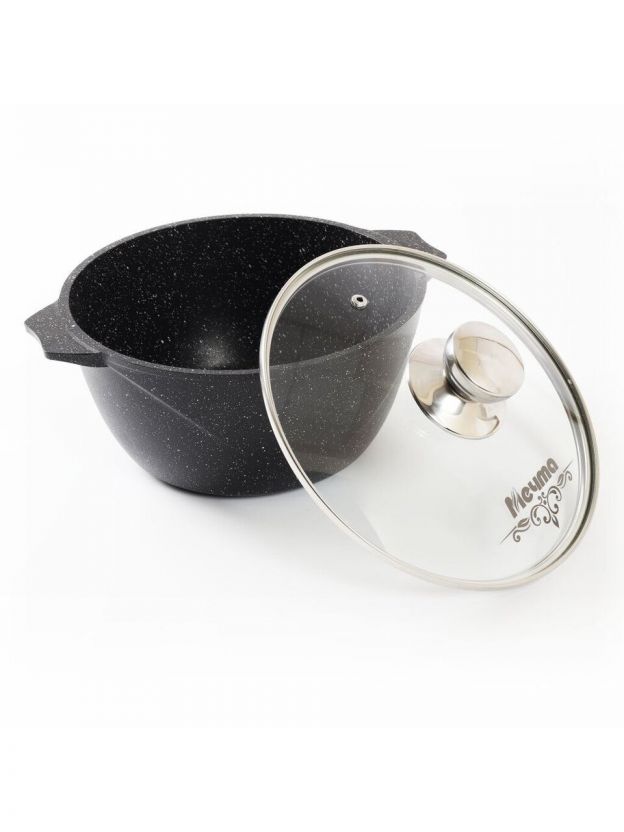 Кастрюля алюминиевая с антипригарным гранитным покрытием 2 л Мечта Гранит Black Induction Pro — идеальный выбор для индукционных плит и универсального использования дома и на даче.