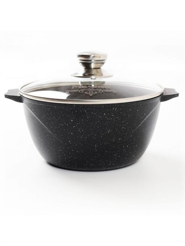 Кастрюля Мечта Гранит Black Induction Pro 2 л — это современное решение для тех, кто ищет, какую кастрюлю выбрать для индукционной плиты или как выбрать посуду для универсального использования. Прочный литой алюминий и инновационное гранитное антипригарное покрытие гарантируют равномерный нагрев, отсутствие пригорания и легкую очистку даже после сложных блюд — плова, супа, макарон или пельменей. Стеклянная крышка с выпускным клапаном позволяет контролировать процесс приготовления и сохранять вкус продуктов.