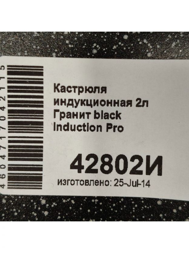 Кастрюля алюминий, антипригарное покрытие, 2 л, крышка стекло, Мечта, Гранит black Induction Pro, 42802И, индукция