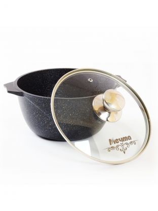 Кастрюля алюминиевая 2 л с гранитным антипригарным покрытием и стеклянной крышкой Мечта Гранит star Induction — универсальное решение для плиты и духовки, надёжность на годы.