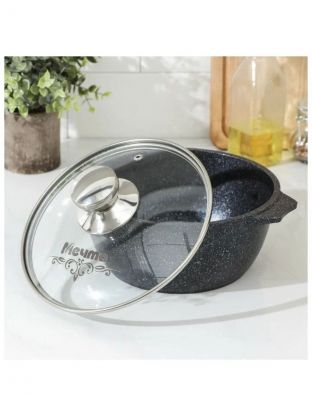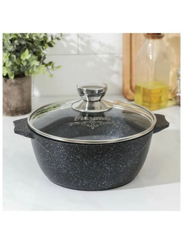 Кастрюля алюминиевая 2 л с антипригарным гранитным покрытием и стеклянной крышкой: готовьте любимые блюда без пригорания и лишних хлопот – идеальный выбор для дома и дачи.