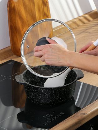 Кастрюля FIT Гурман — это современное решение для тех, кто ищет, какую кастрюлю выбрать для приготовления каш, супов, гарниров или пельменей. Благодаря антипригарному гранитному покрытию блюда не прилипают, а очищение занимает минимум времени. Стеклянная крышка с выпускным клапаном позволяет контролировать процесс варки, предотвращая выкипание.