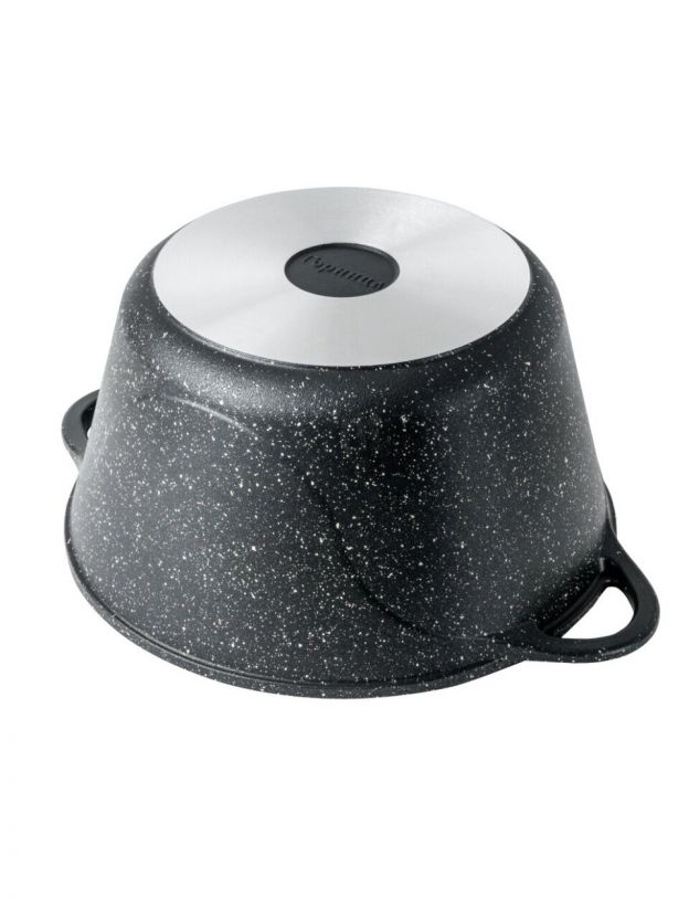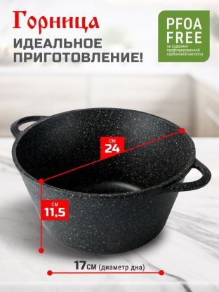 В отличие от обычных алюминиевых кастрюль без покрытия, эта модель не вступает в реакцию с продуктами и не окрашивается, а уход за ней занимает минуты — можно мыть в посудомоечной машине. Если вы ищете, какая кастрюля лучше для индукционной плиты — обратите внимание, что эта модель не подходит для индукции, зато отлично работает на газовых, электрических и стеклокерамических плитах, а также в духовке. Благодаря современному дизайну и прочности кастрюля Горница Гранит подойдёт как для ежедневного использования, так и в качестве подарка.