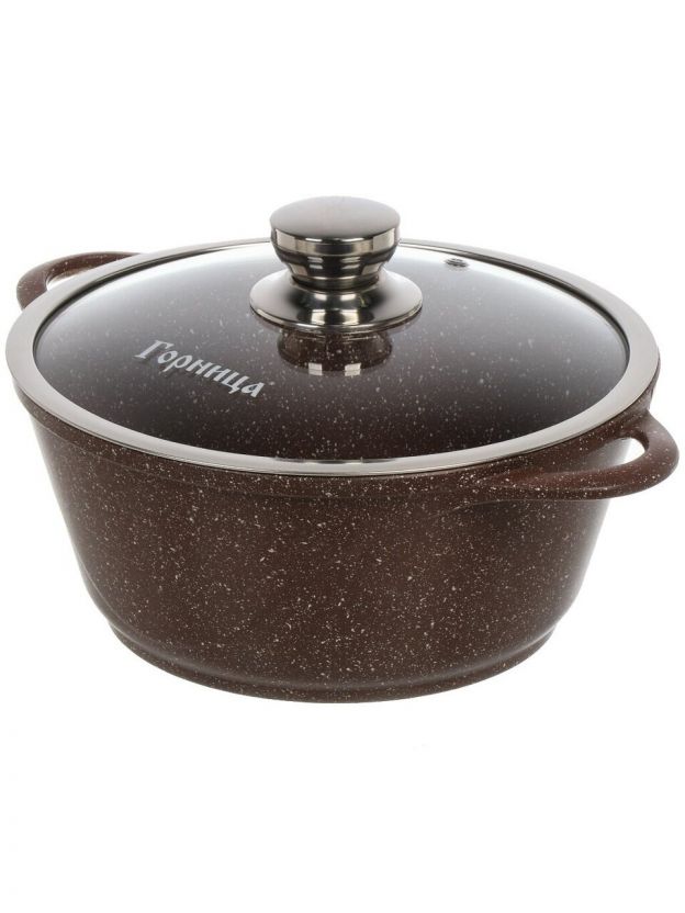 Кастрюля алюминий 3 л Горница Шоколад — это современное решение для ежедневной готовки. Благодаря мраморному антипригарному покрытию блюда не пригорают, а мытьё занимает минимум времени — подходит тем, кто ищет, какую кастрюлю купить для плова или каши без лишних хлопот. Стеклянная крышка с выпускным клапаном позволяет контролировать процесс готовки и сохраняет вкус продуктов.