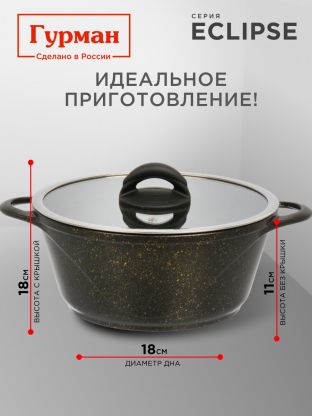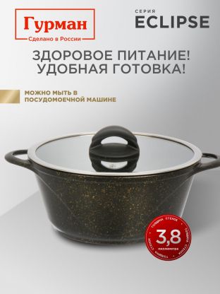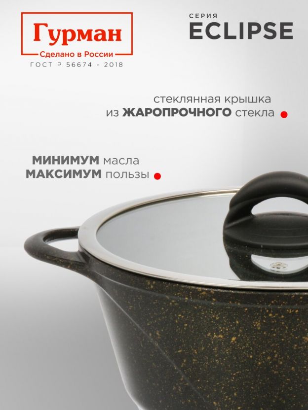 Кастрюля алюминиевая 3 л с гранитным антипригарным покрытием и стеклянной крышкой: идеальный выбор для индукции, дома и дачи. Гурман Eclipse — надежно, удобно, выгодно.