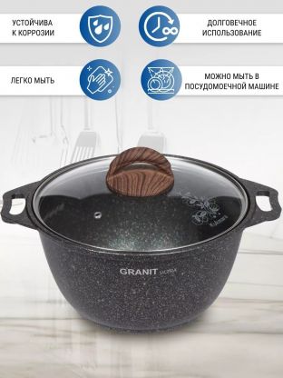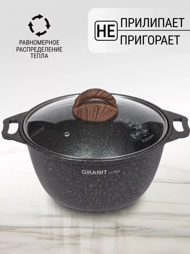 Если вы ищете, какую кастрюлю выбрать для ежедневной готовки, Kukmara Granit Ultra — один из лучших вариантов для семьи. Гранитное антипригарное покрытие нового поколения обеспечивает равномерный прогрев и предотвращает пригорание даже при минимальном количестве масла. Кастрюля изготовлена из алюминия с толстым дном (6 мм), что гарантирует долгий срок службы и устойчивость к деформации.