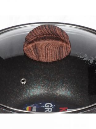 Гранитное покрытие предотвращает пригорание, позволяет готовить с минимальным количеством масла и легко очищается вручную или в посудомоечной машине.