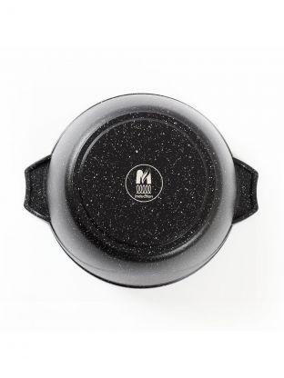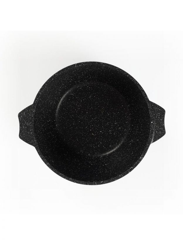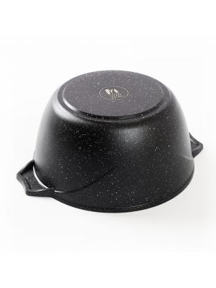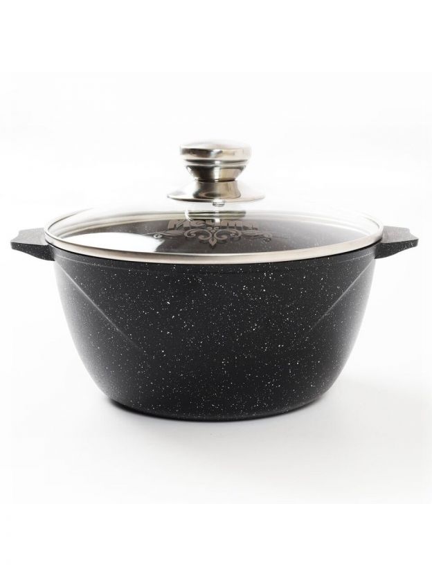 Гранитное покрытие защищает от пригорания, облегчает мытьё (можно в посудомоечной машине), устойчиво к царапинам и подходит для приготовления любых блюд — от плова до супа и макарон.