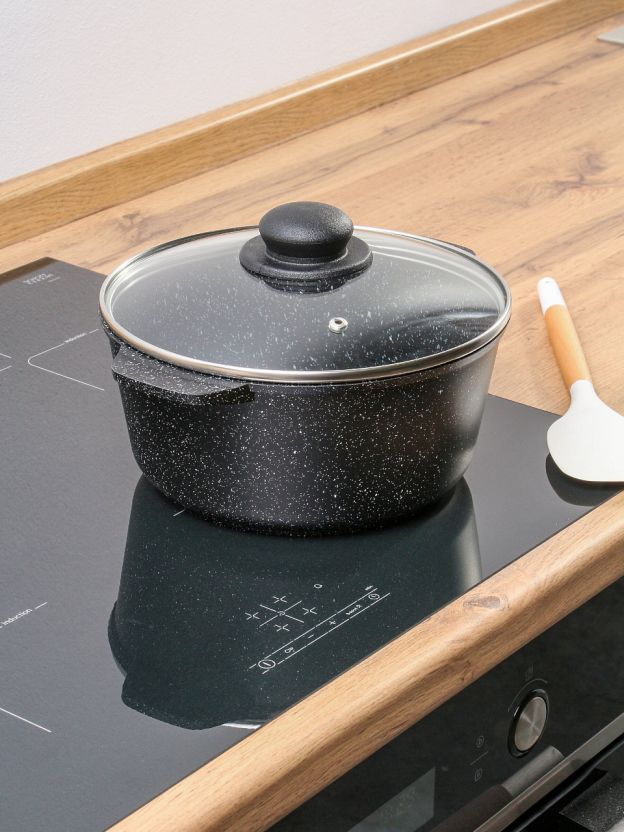 Если вы ищете, что лучше для приготовления супов, плова или пюре на газовой или электрической плите, эта модель станет отличным решением. В отличие от обычных эмалированных кастрюль, гранитное покрытие FIT не требует особого ухода и легко очищается, а возможность мытья в посудомоечной машине экономит силы. Кастрюля не подходит для индукционных плит, зато отлично проявляет себя на даче или в городской кухне.
