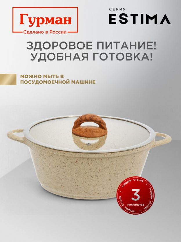Как использовать кастрюлю Гурман Estima? Она подходит для варки супов, каш, макарон, пельменей, плова и даже для тушения овощей. Можно мыть в посудомоечной машине, что экономит время. В отличие от обычных алюминиевых или эмалированных кастрюль, мраморное покрытие Estima служит дольше, не царапается и не темнеет. Часто спрашивают: чем отличается кастрюля с мраморным покрытием от стандартной? Она легче по весу (2,32 кг), не требует замачивания и подходит для всех типов плит, включая индукцию.