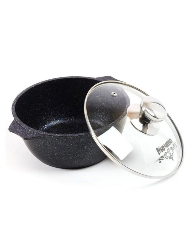 Кастрюля из алюминия с гранитным антипригарным покрытием «Мечта Гранит star» — оптимальный выбор для тех, кто ищет недорогую, долговечную и практичную посуду для ежедневного приготовления. Благодаря толстому дну (7 мм) и надежному стеклу крышки с выпускным клапаном, кастрюля подходит для тушения, варки и запекания, а также для приготовления блюд на газовых, электрических и стеклокерамических плитах. Часто спрашивают: как выбрать кастрюлю для плова или каши, чтобы не пригорало? — здесь гранитное покрытие решает эту задачу, обеспечивая легкое отделение пищи и быстрое мытье, в том числе в посудомоечной машине.