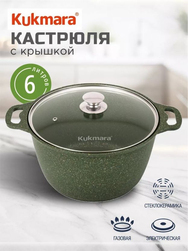 Кастрюля алюминий, антипригарное покрытие, 6 л, крышка стекло, Kukmara, Trendy style, к61tsml, малахит
