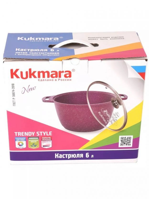 Кастрюля Kukmara Trendy style 6 л с антипригарным покрытием и стеклянной крышкой — идеальный выбор для семьи: готовьте плов, суп, макароны без пригорания и хлопот.