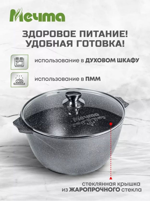 Сделайте ставку на удобство: закажите кастрюлю Мечта Гранит 8 л сейчас — получите гарантию 12 месяцев и уверенность в отличном результате при любом рецепте.