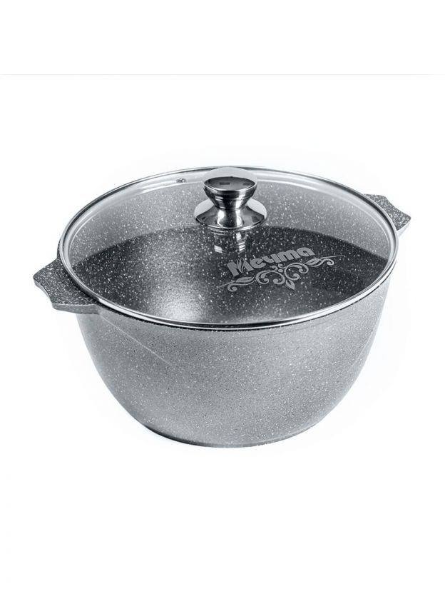 Кастрюля алюминиевая 8 л с антипригарным гранитным покрытием и стеклянной крышкой Мечта Гранит 48701 — оптимальный выбор для семьи и дачи: готовьте без пригорания, экономьте время и силы.