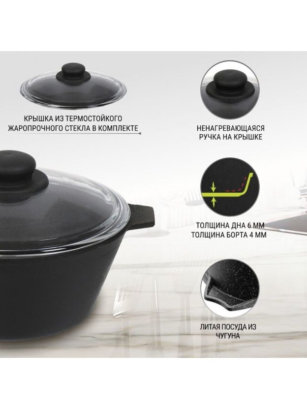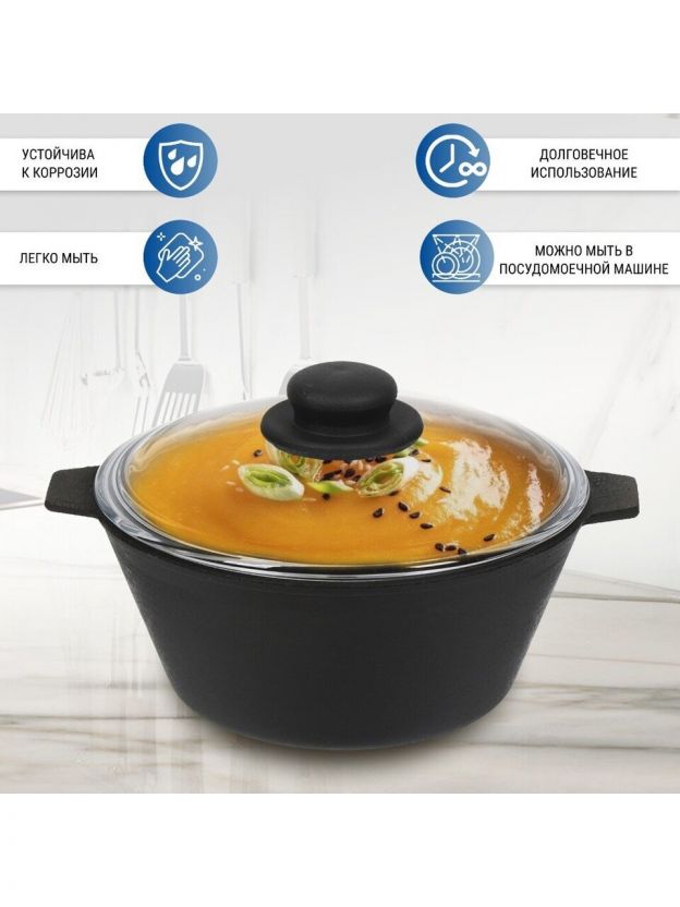 Закажите чугунную кастрюлю Камская посуда 2.5 л онлайн с гарантией производителя и быстрой доставкой — выгодное решение для вашей кухни и дачи. Успейте купить недорого с официальной гарантией 12 месяцев!