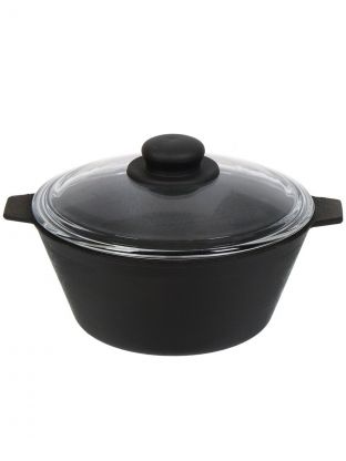 Кастрюля чугун, 2.5 л, крышка стекло, Камская посуда, ка27, черная, индукция