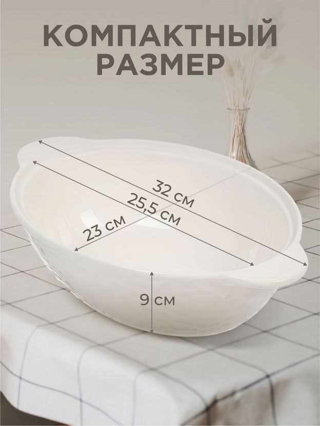 - Оптимальный размер 20x32x8,5 см (2 л) — удобно готовить для семьи, подходит для духовки и микроволновки