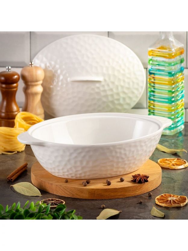 Кастрюля для запекания керамика, 20х32х8.5 см, 2 л, овальная, с крышкой, Антарктида, Y6-10219/Y4-9182