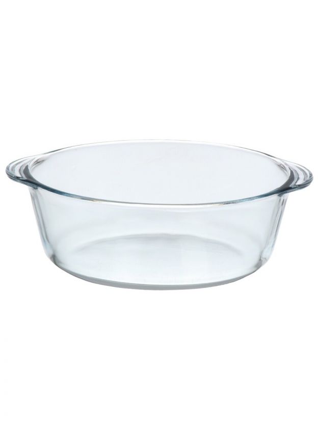 Круглая стеклянная кастрюля Borcam 2 л с крышкой: универсальное решение для запекания, приготовления и хранения блюд дома и на даче, подходит для СВЧ и духовки.