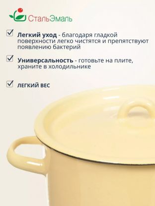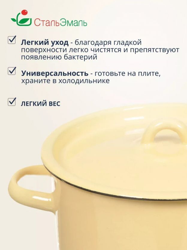 Кастрюля эмалированная СтальЭмаль 1.5 л: универсальное решение для индукционных и газовых плит. Долговечность, компактность, выбор цвета — для дома и дачи.